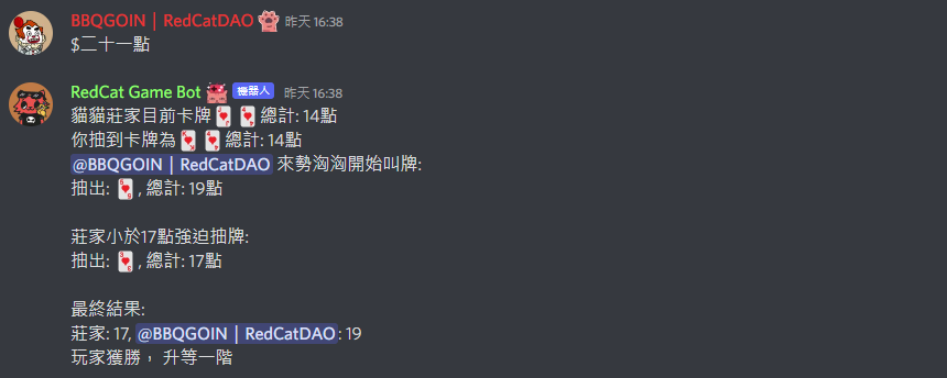 <mark style="color:blue;background-color:green;">輸入 $</mark><mark style="color:purple;background-color:green;">二十一點</mark> <mark style="color:blue;background-color:green;">有機會成為 21 點高手</mark>