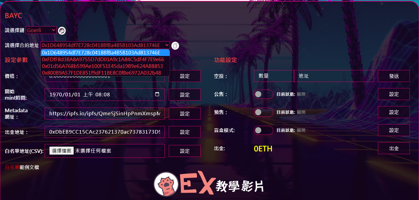 **面板是只有使用我們的公版才能夠使用，因為本身智能合約就可以直接呼叫，我就直接把這些常用的功能放在面板當中，方便紅貓們直接做使用。**